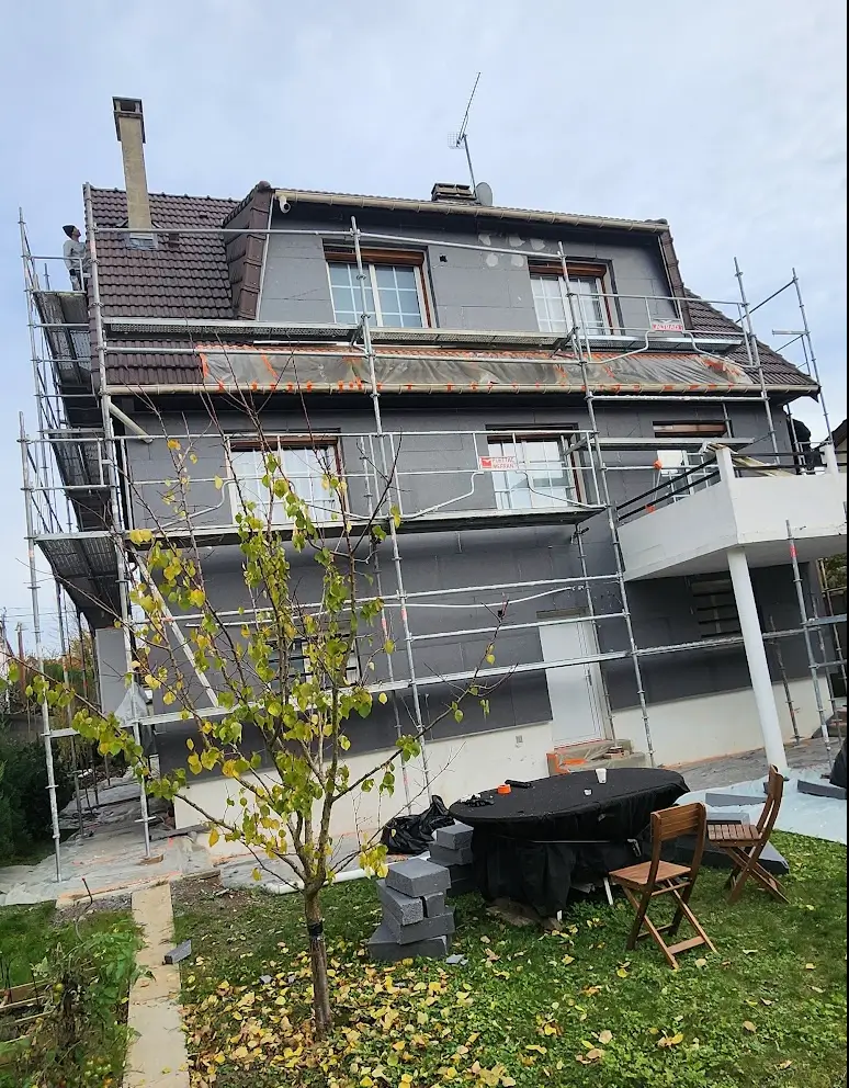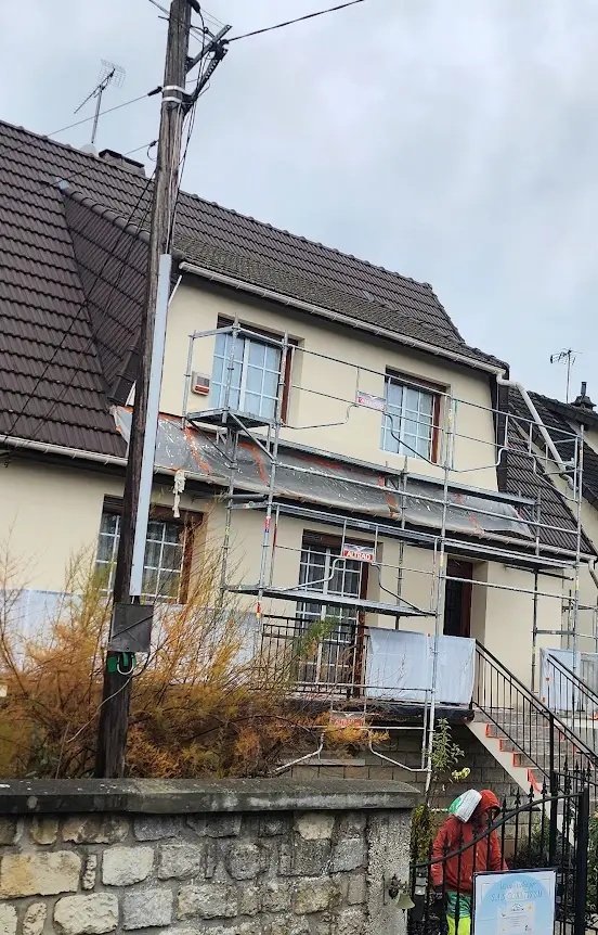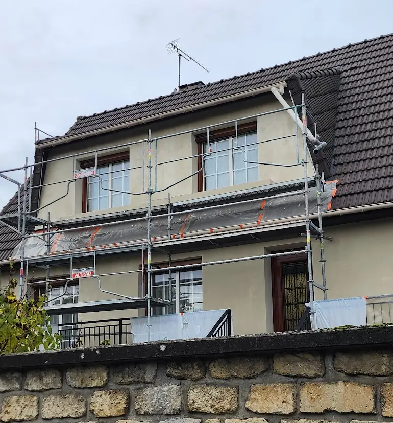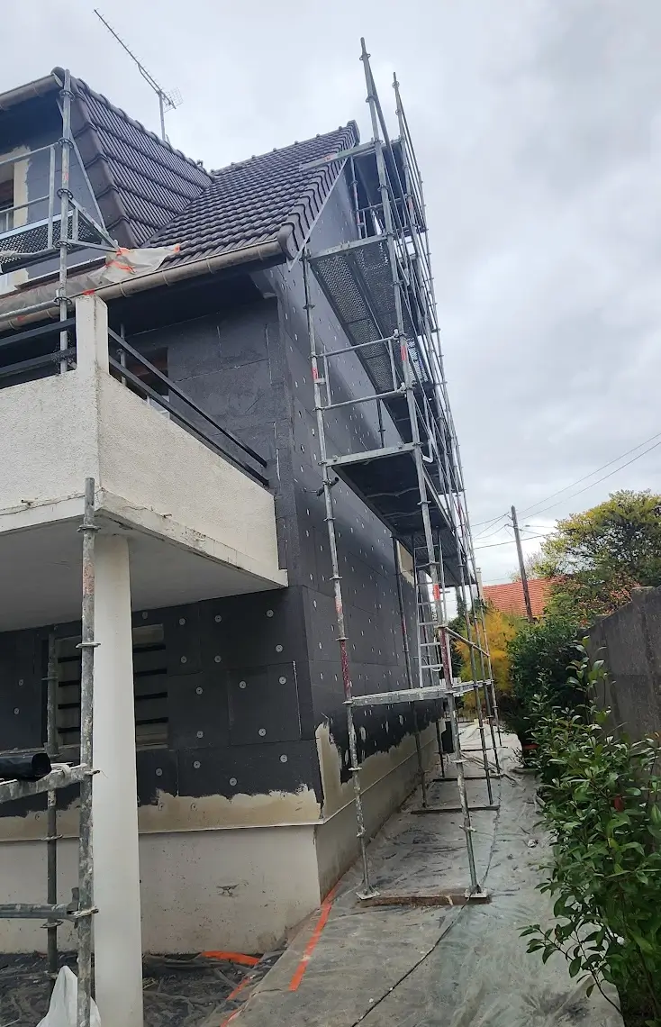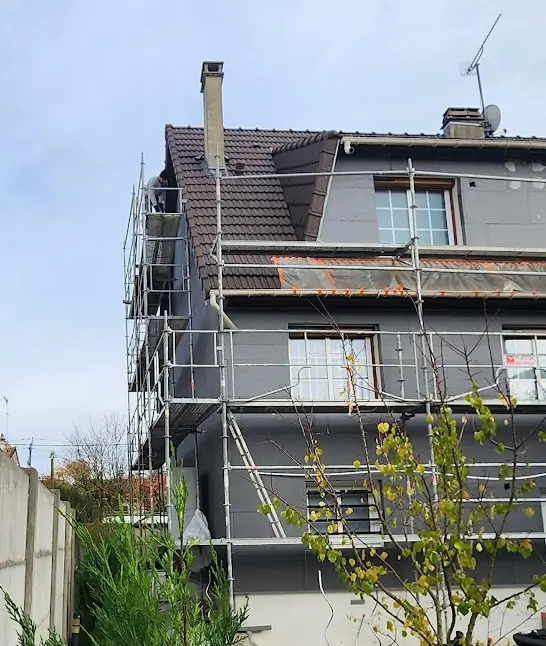 Ce chantier concerne la réalisation d’une isolation thermique par l’extérieur (ITE) sur une maison individuelle située à Noisy-le-Grand, en Seine-Saint-Denis.