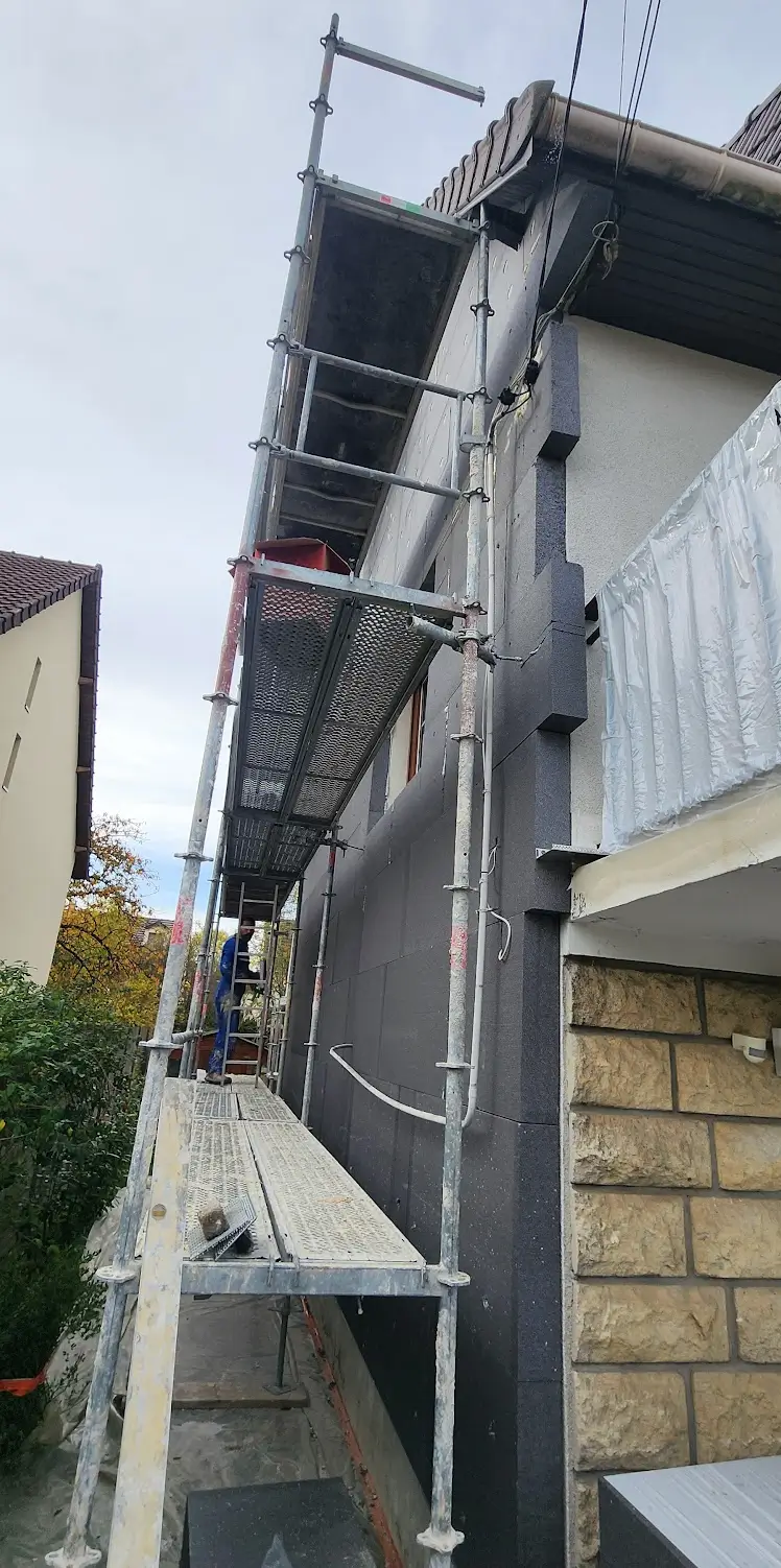 Les façades ont été entièrement isolées par l’extérieur à l’aide de panneaux isolants haute performance, puis recouvertes d’un système sous enduit assurant à la fois protection, durabilité et esthétique.