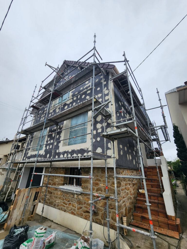 Ce chantier visait la rénovation thermique complète d’une maison de caractère à étage, avec soubassement en pierre apparente.
